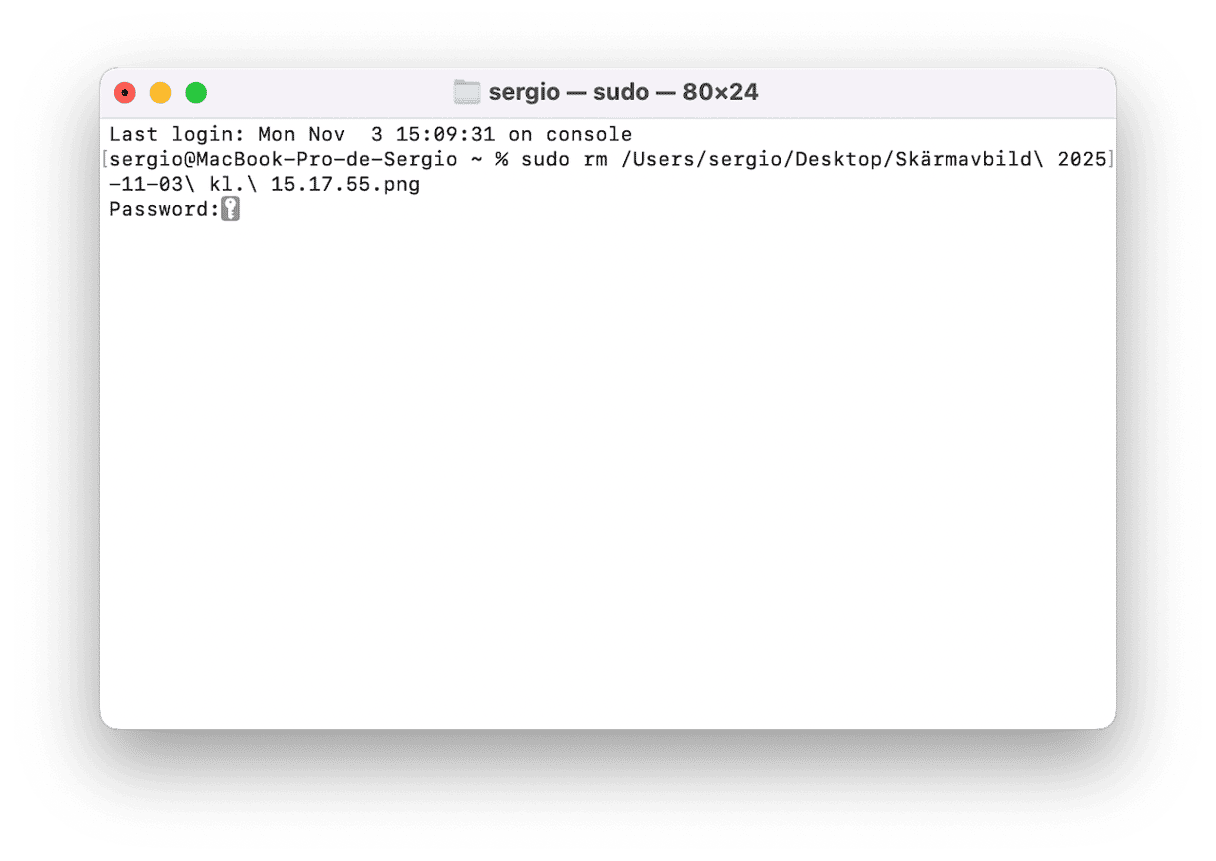 - Tryck på returtangenten och ange ditt lösenord för att bekräfta. Tryck på returtangenten en gång till.