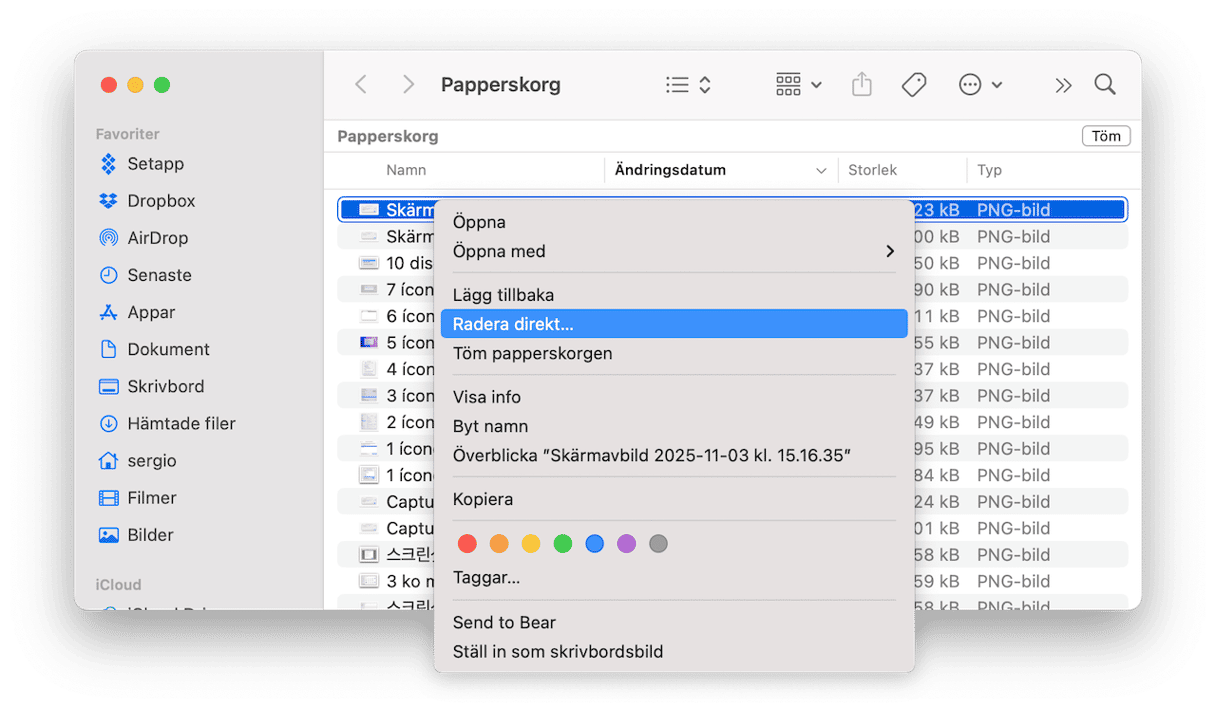 Varning: det finns ingen återvändo! Använd Command + Option + Delete om du vill ta bort en fil helt. Den åker inte till papperskorgen, så du kommer inte att kunna återställa den senare.