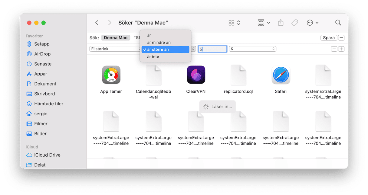 Ett annat sätt att söka efter stora filer är att använda sökfilter i Finder. Det kan vara till hjälp för att hitta de största filerna i datorn. Så här gör du för att hitta stora filer med Finder: