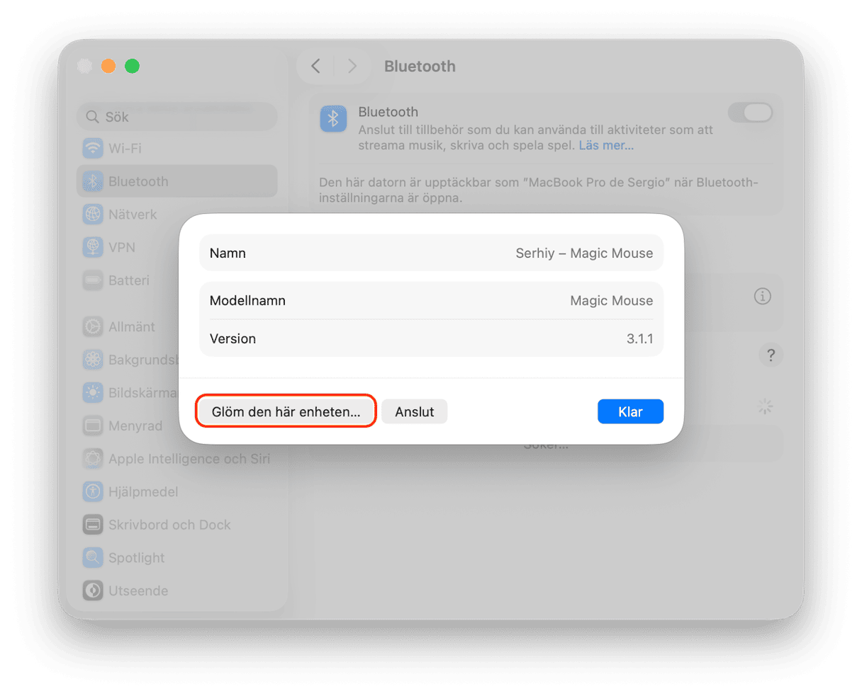 Om det inte fungerar kan du försöka med att glömma enheten och sedan parkoppla den igen: