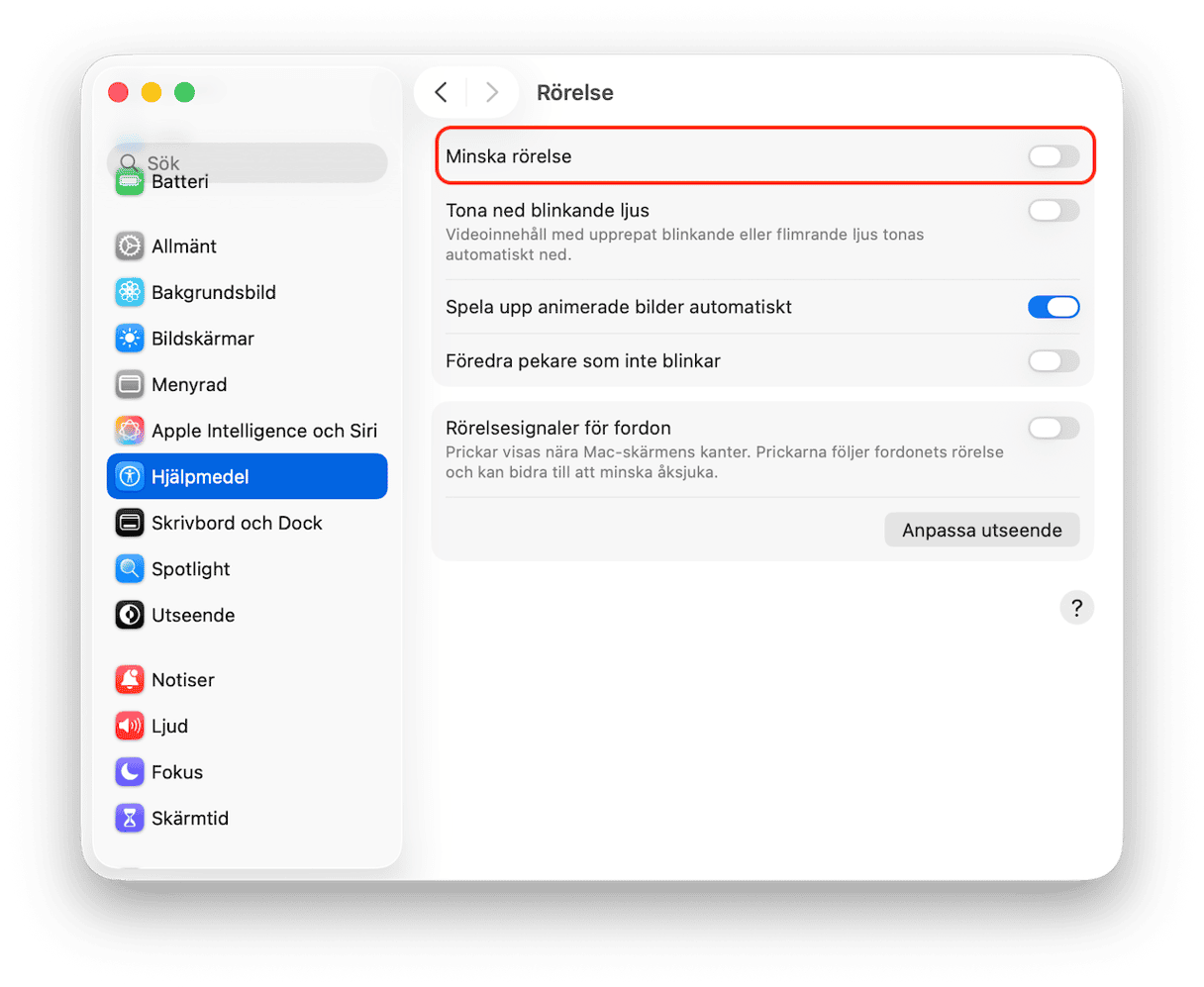 macOS Tahoe använder mer ström för visuella effekter, vilket kan göra att animationerna inte är lika smidiga på din Mac. Som tur är kan du stänga av effekterna: