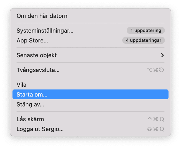 Ofta kan en omstart lösa många problem, som temporära filer som hindrar en anslutning till Apples servrar. Det är även en god vana att starta om datorn då och då.