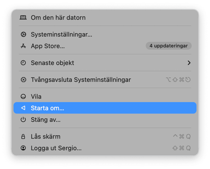 Ja, världens äldsta trick fungerar fortfarande. Och när det handlar om gigabyte är det alltid en bra idé att göra en snabb omstart. Gå till Apple-menyn och klicka på Starta om.