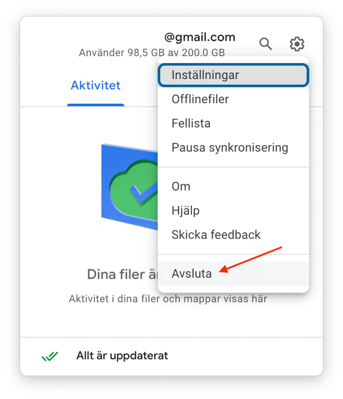 Första steget om du vill avinstallera Google Drive på datorn är att koppla från ditt konto. Så här gör du: