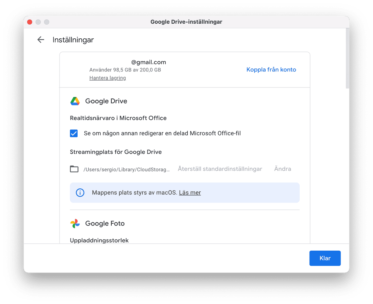 - Gå till Google Drive-ikonen > Inställningar igen.
