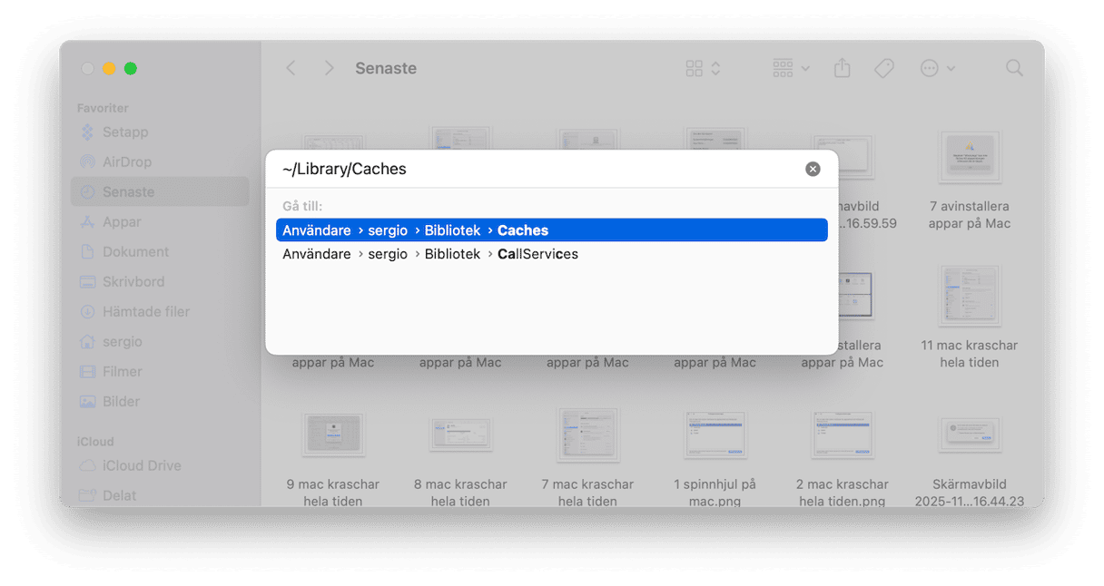 Det var det! Men det går att rensa cachefiler manuellt också om du vill göra det. Du kan till exempel öppna ett nytt Finder-fönster och trycka på kommando+skift+G. Klistra in /Bibliotek/Caches och tryck sedan på returtangenten och radera systemets cachefiler därifrån. Upprepa för ~/Bibliotek/Caches för att ta bort användarcache.