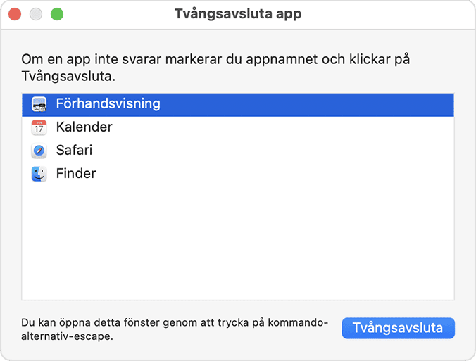 Om du bara behöver låsa upp ett program som har låst sig så är Tvångsavsluta rätt verktyg.