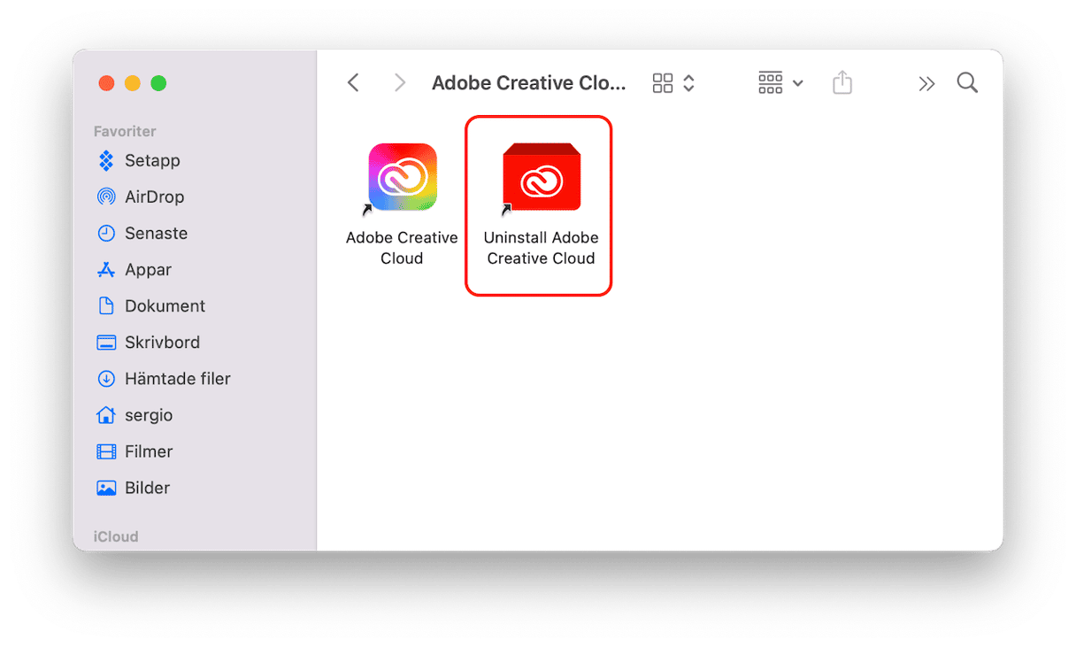 Själva avinstallerarna hittar du i Finder > Appar. Om appen ser ut som en mapp inuti programmappen så har den troligen en separat avinstallerare. Annars ser avinstalleraren ut som en separat app. Den har namnet [appens namn] Uninstaller eller Uninstall [appens namn].