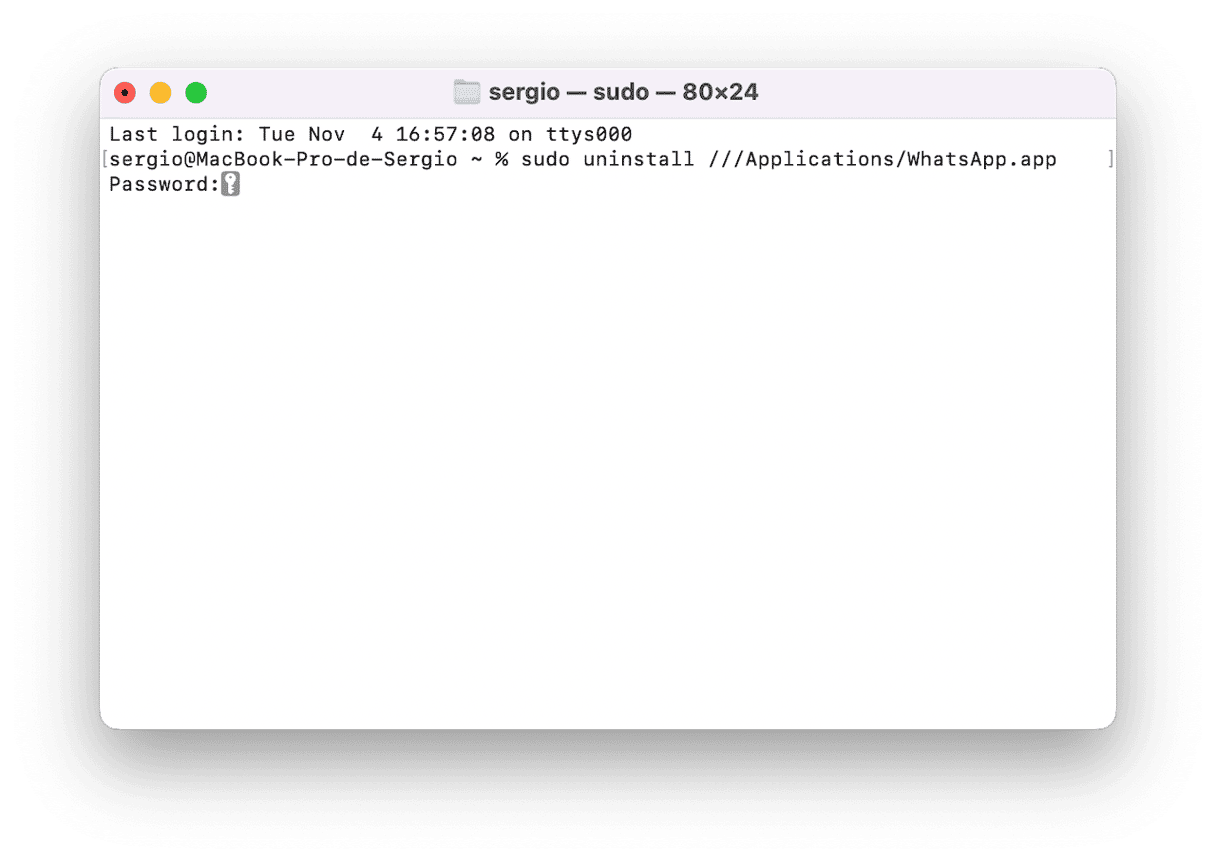 sudo uninstall file:// - Dra appikonen till terminalfönstret – du kommer att se sökvägen till appen.