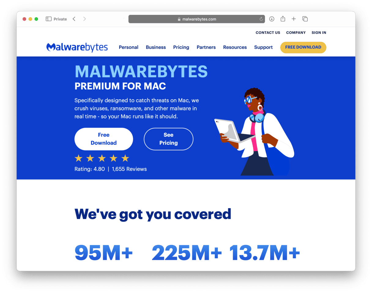Malwarebytes erbjuder förstklassigt skydd mot skadlig programvara för macOS. Med appen kan du schemalägga dagliga genomsökningar och köra dem när du inte använder din Mac. Skydd i realtid håller din Mac säker dygnet runt genom att blockera hot i bakgrunden. På webbplatsen står det att appen ger mindre processorbelastning, och det stämmer: din Mac kommer att fungera smidigt med Malwarebytes.