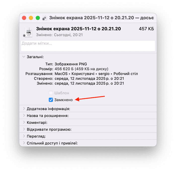 Функція замикання файлів на Mac знаходиться в меню Досьє кожного файла.