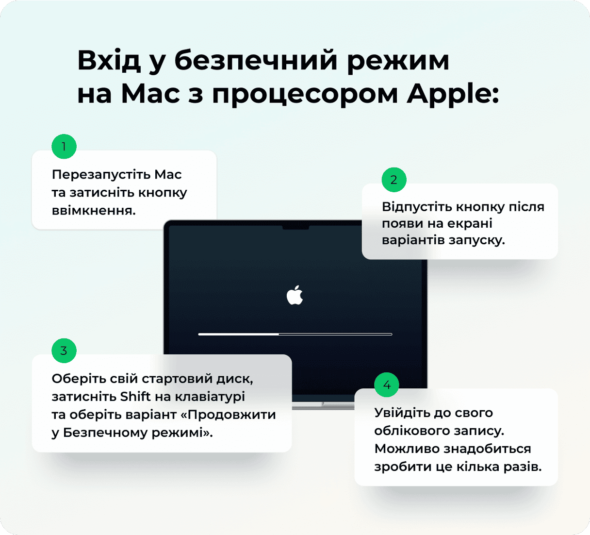 - Затисніть клавішу Shift під час перезапуску Mac.
