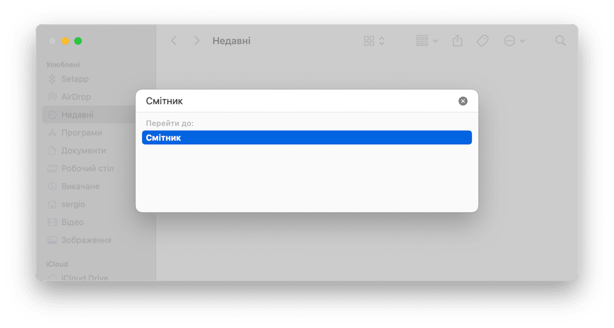 - Тож відкрийте Смітник і знайдіть файли, котрі не хочуть видалятись повністю.
