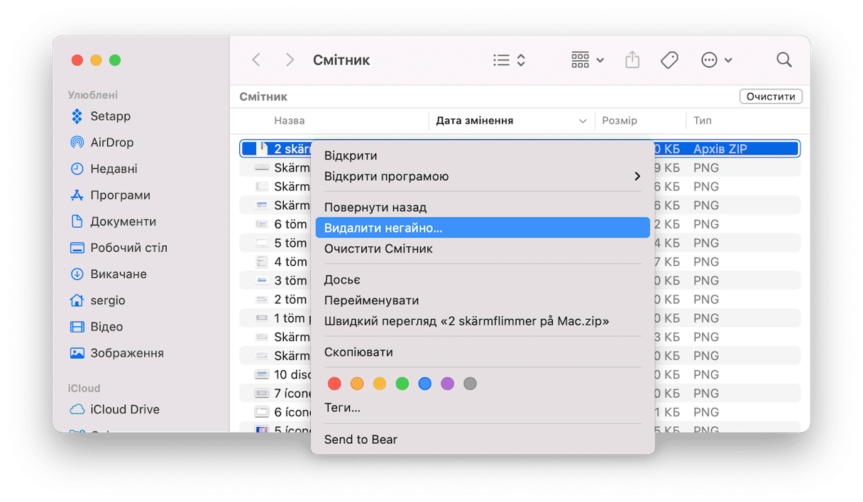 Важливо: це безповоротно! Використовуйте комбінацію Command + Option + Delete, якщо ви хочете повністю видалити файл без можливості відновлення. Він не потрапить у Смітник, а буде одразу видалений безповоротно.