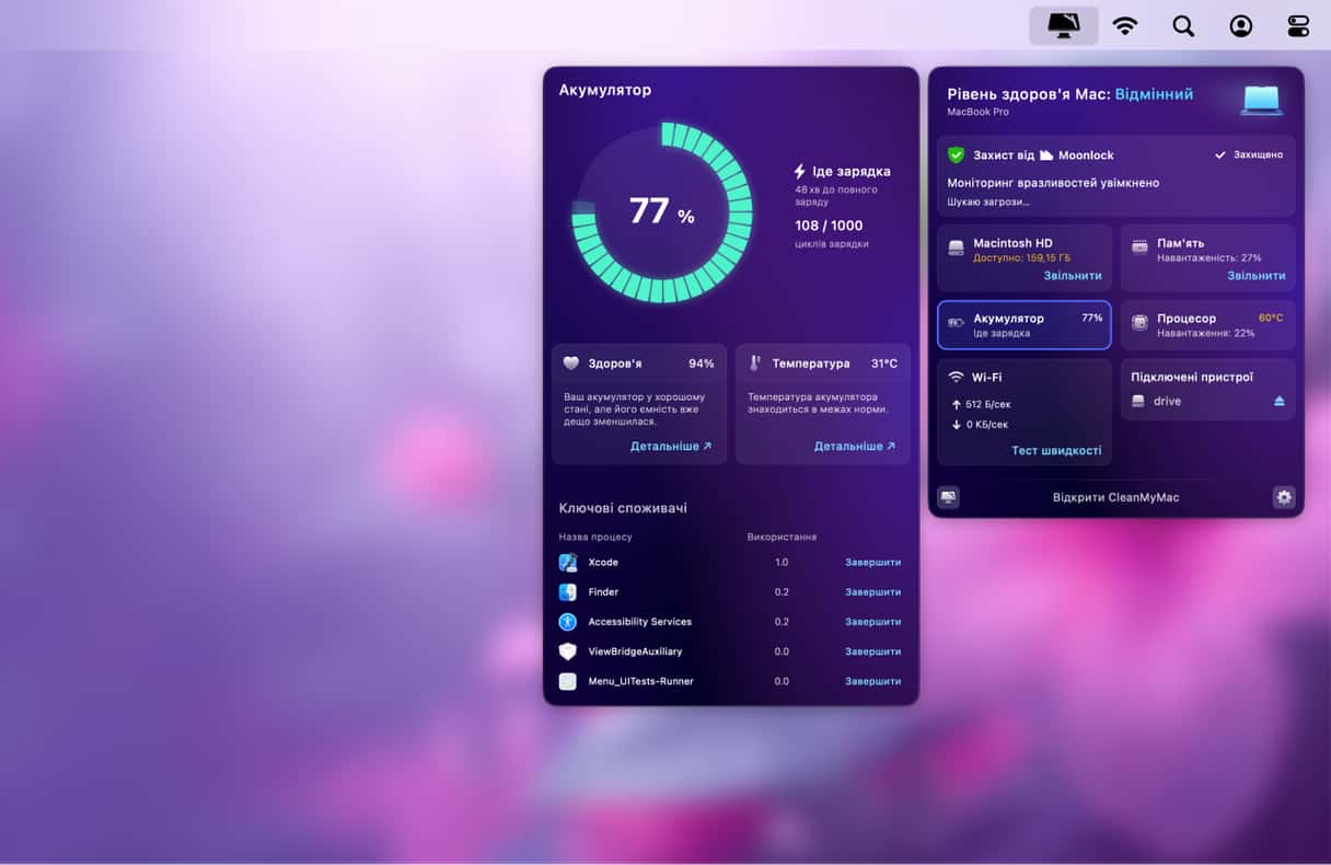 - Клацніть значок Меню CleanMyMac у смузі меню.