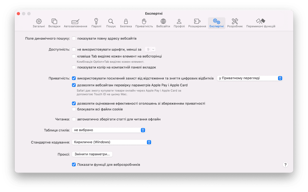 - На вкладці Експертні встановіть прапорець Показати функції для веброзробників.