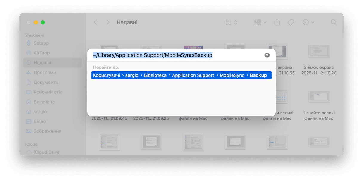 ~/Library/Application Support/MobileSync/Backup - Видаліть вміст цієї папки.