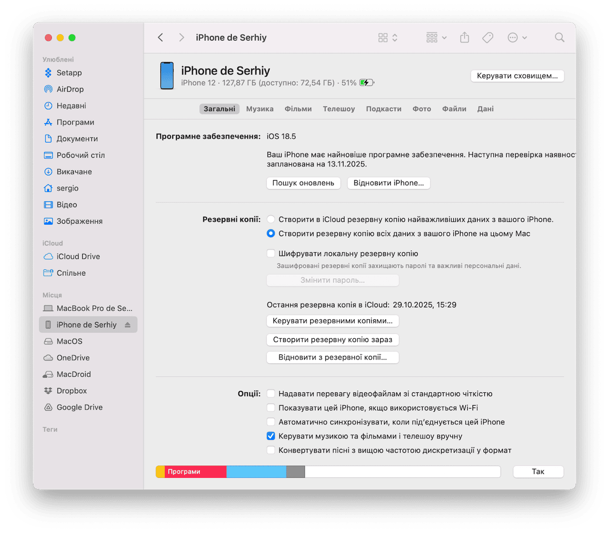 Клацніть правою кнопкою на резервній копії та скористайтесь функцією перегляду у Finder, якщо бажаєте кудись перемістити копію. В іншому випадку, просто скористайтесь кнопкою видалення.
