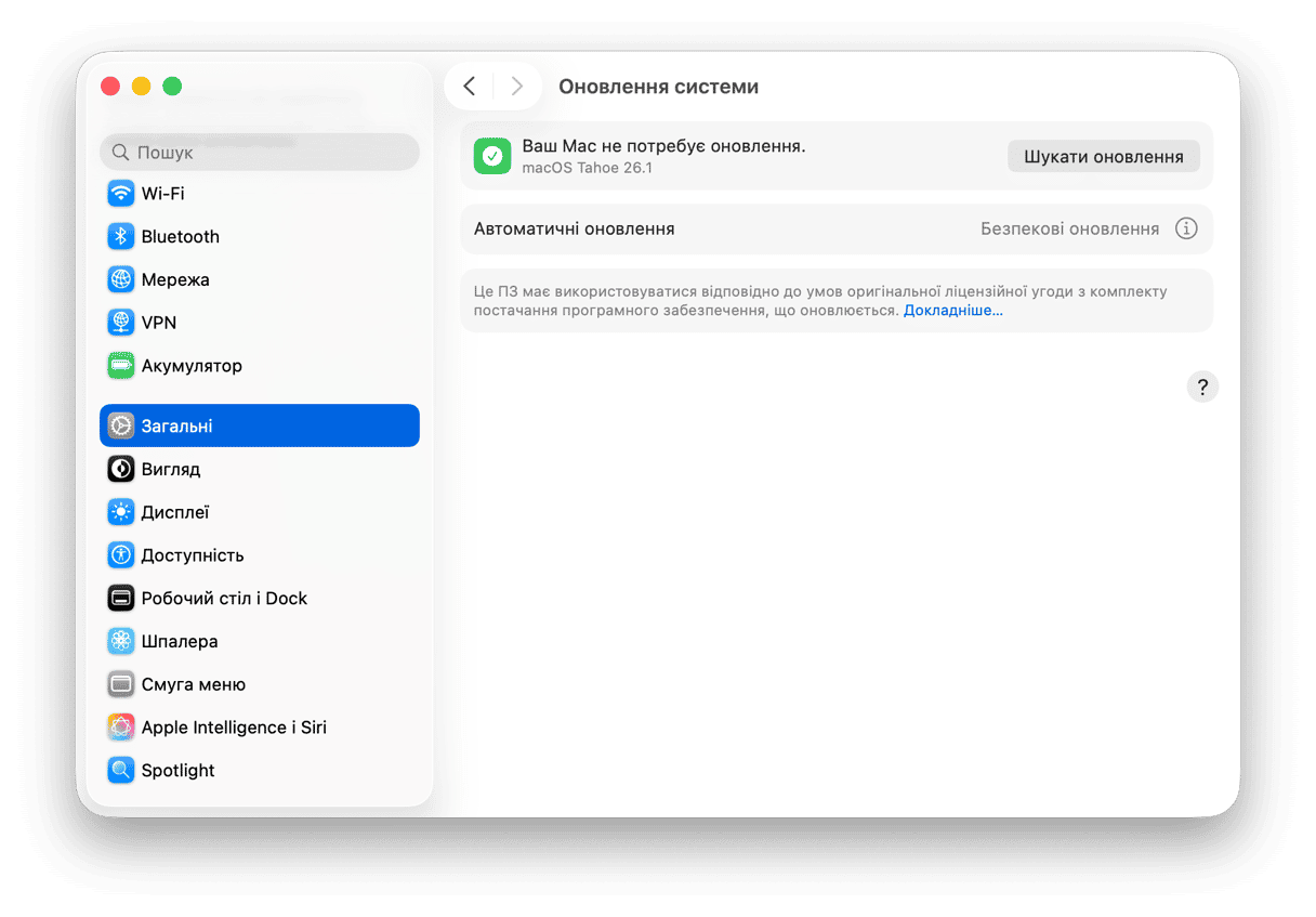 Після перевстановлення macOS ви можете знову перевірити наявність оновлень у Системних параметрах.