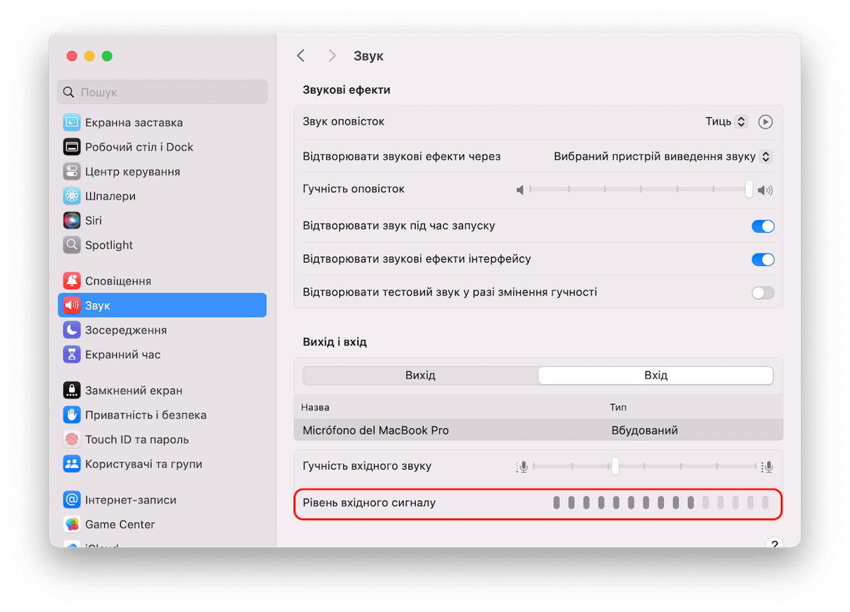 - Якщо цього не відбувається або внутрішній мікрофон недоступний – ваш Mac просто не ідентифікує мікрофон як пристрій для вхідного звуку.