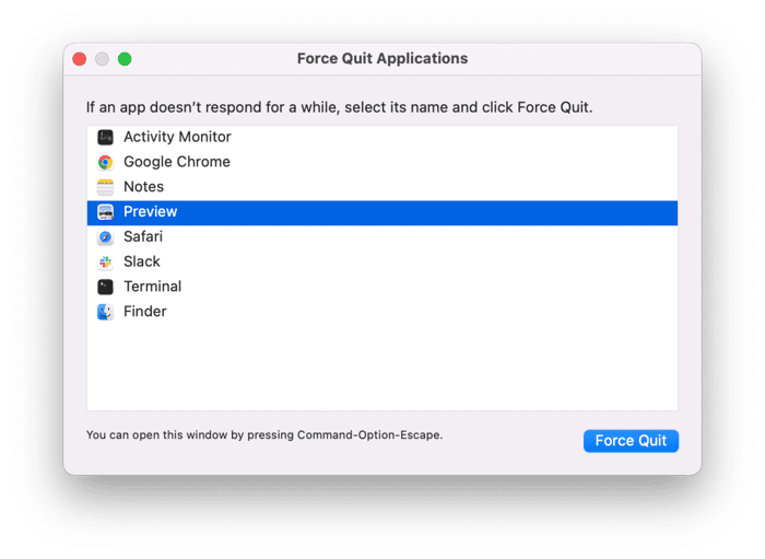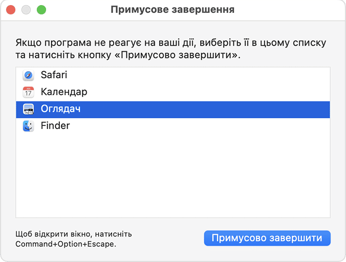 - Оберіть пункт Примусово завершити (або натисніть Command-Alt-Esc).